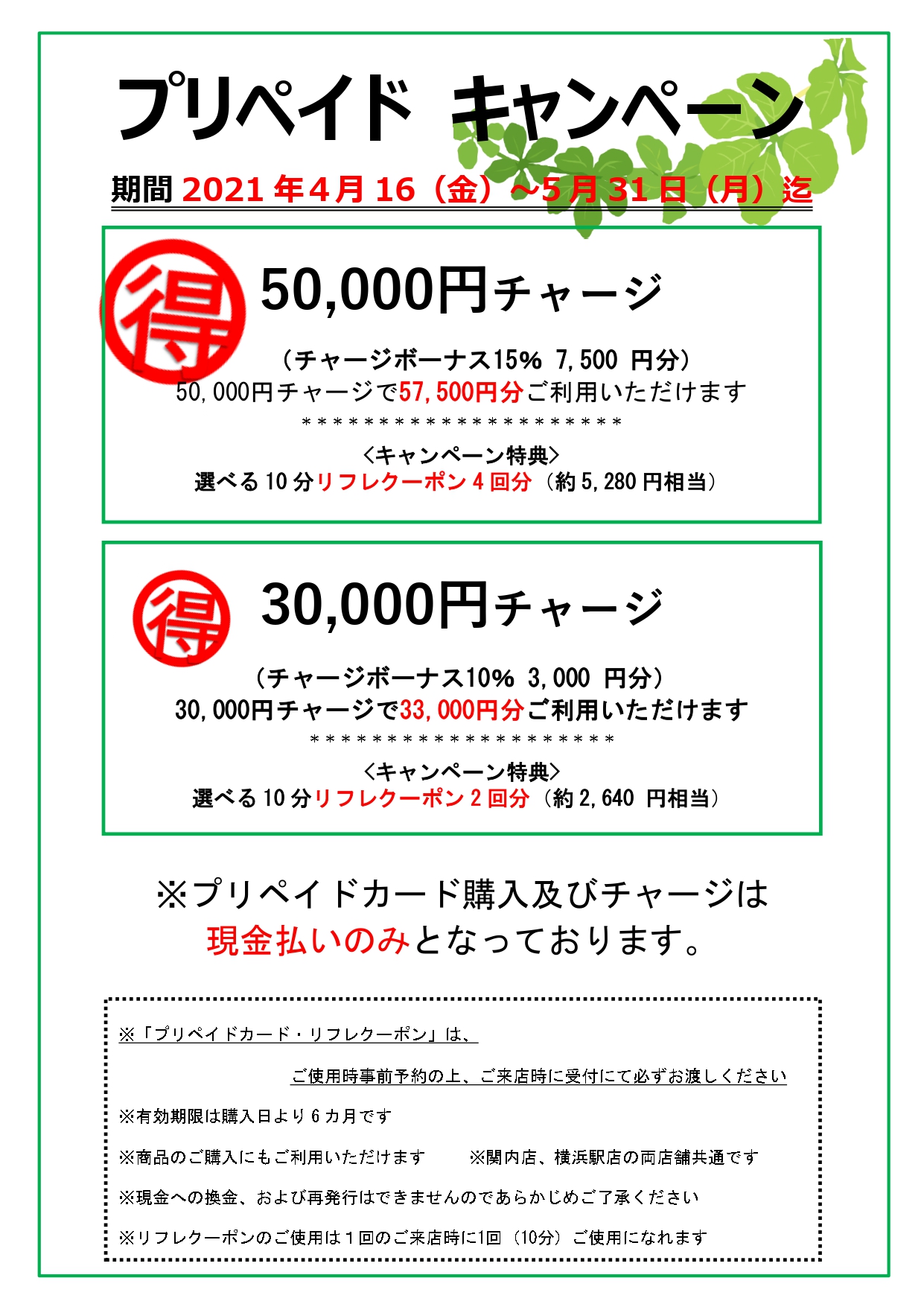 2021年3月14日(日)より「現金払いのみ」となります。