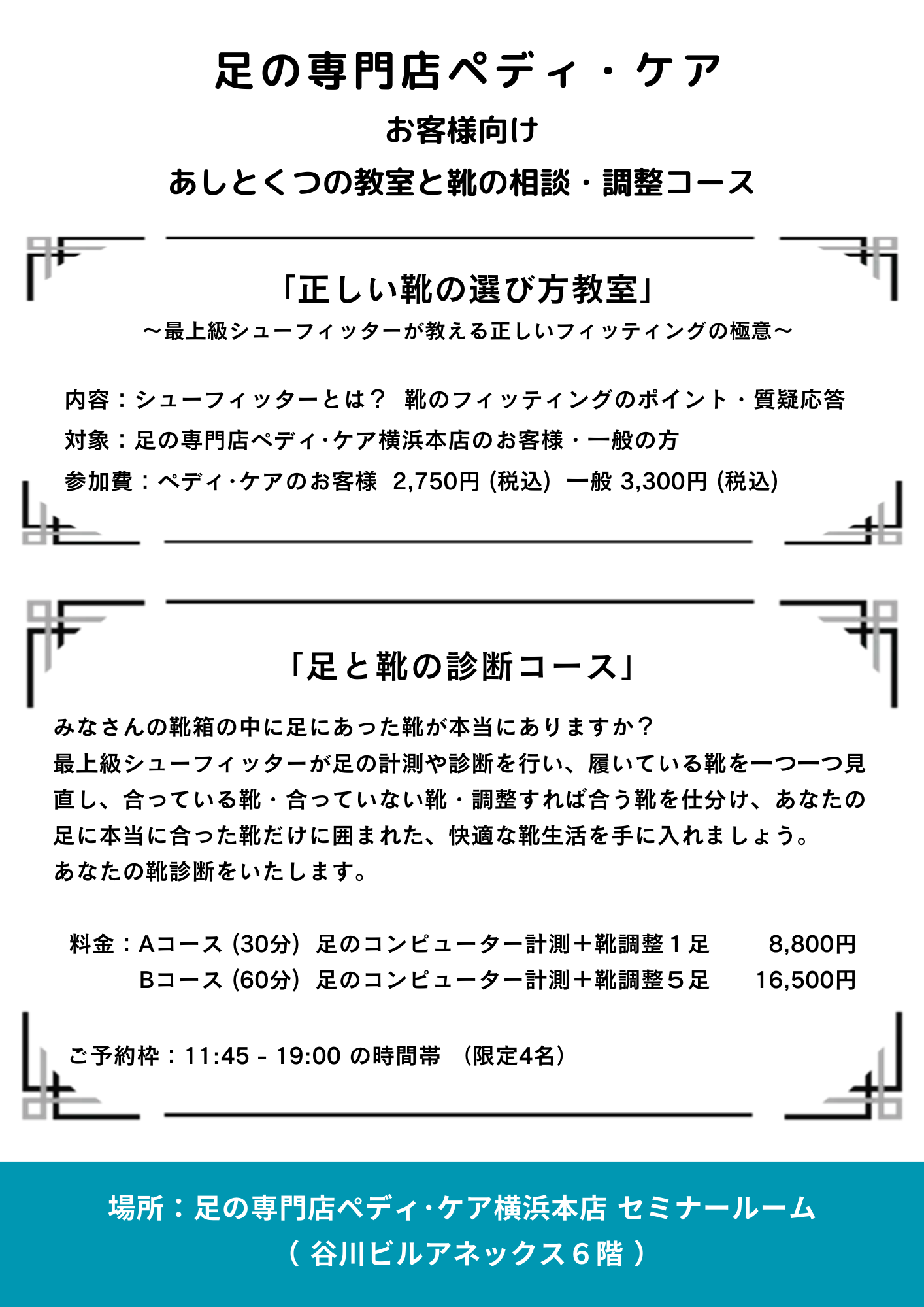 対象:足の専門店ペディ・ケア 横浜本店のお客様・一般のお客様(第一部のみ)