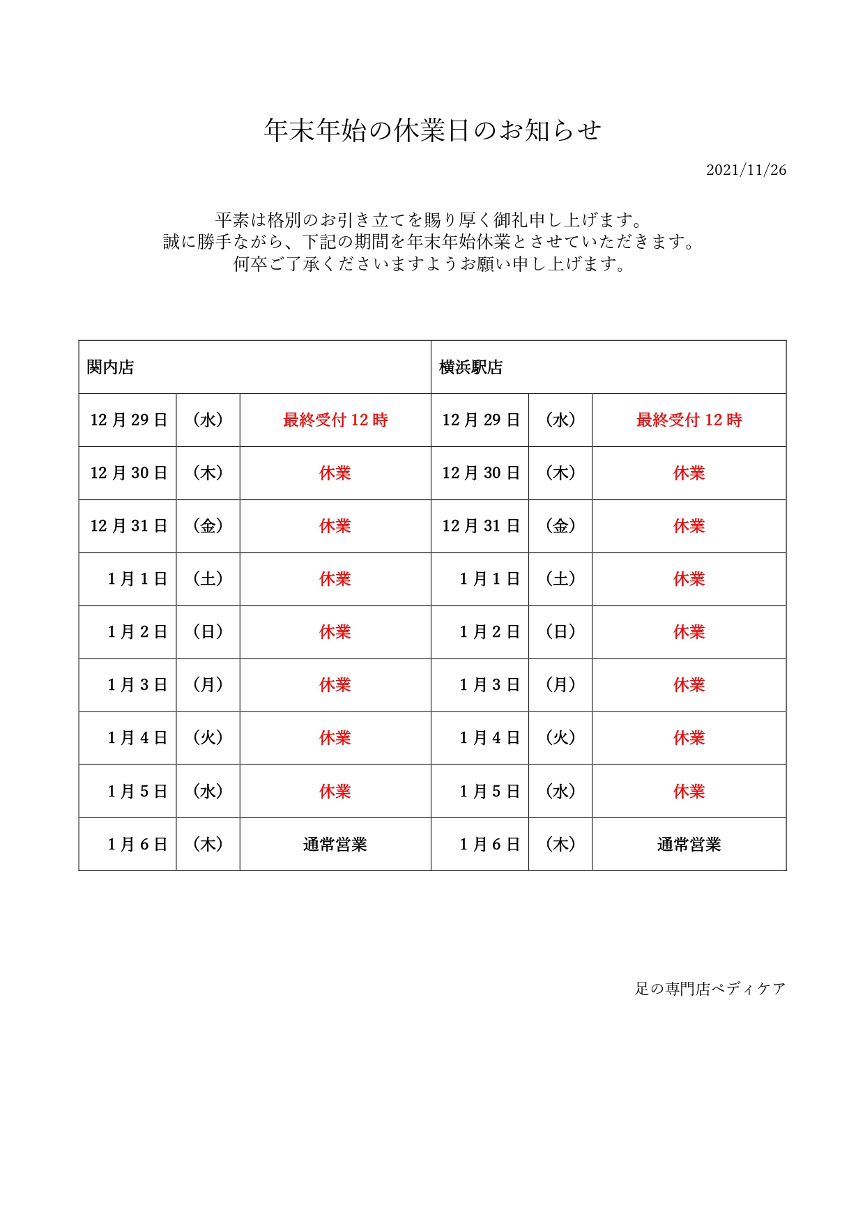 年内最終営業日 2021年12月29日(水)最終受付12時